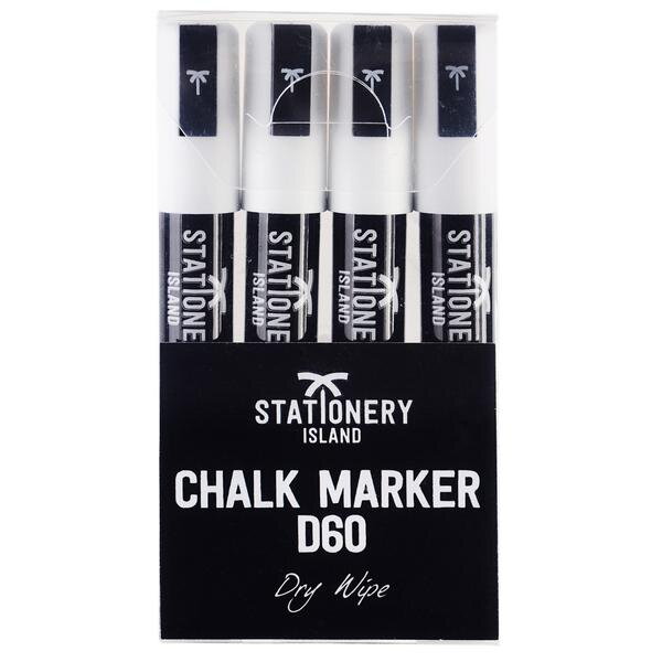 Sada 4 bílých popisovačů na bázi tekuté křídy.